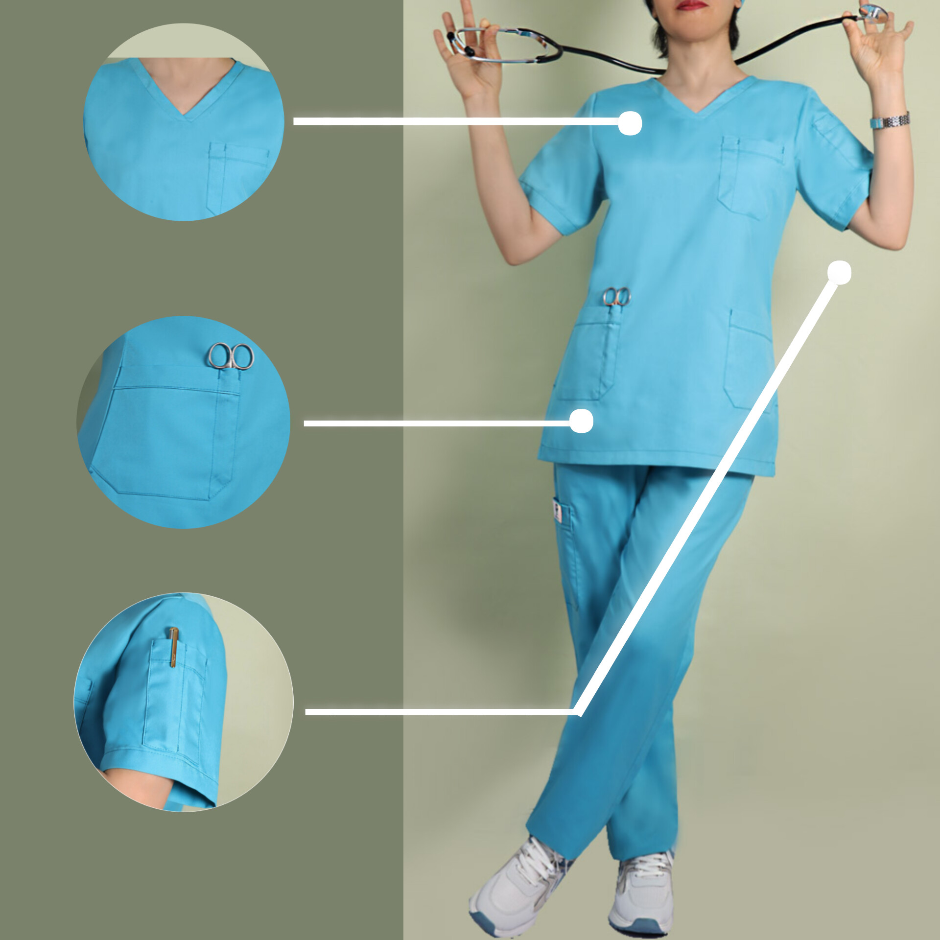 ست اسکراب و شلوار پزشکی زنانه آبی فیروزه ای