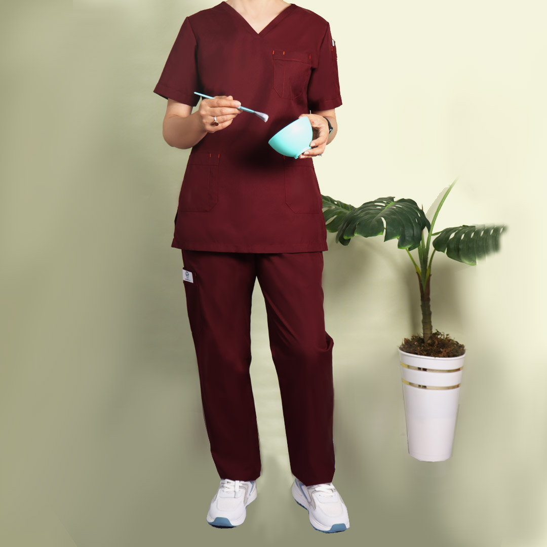 ست اسکراب و شلوار زرشکی زنانه