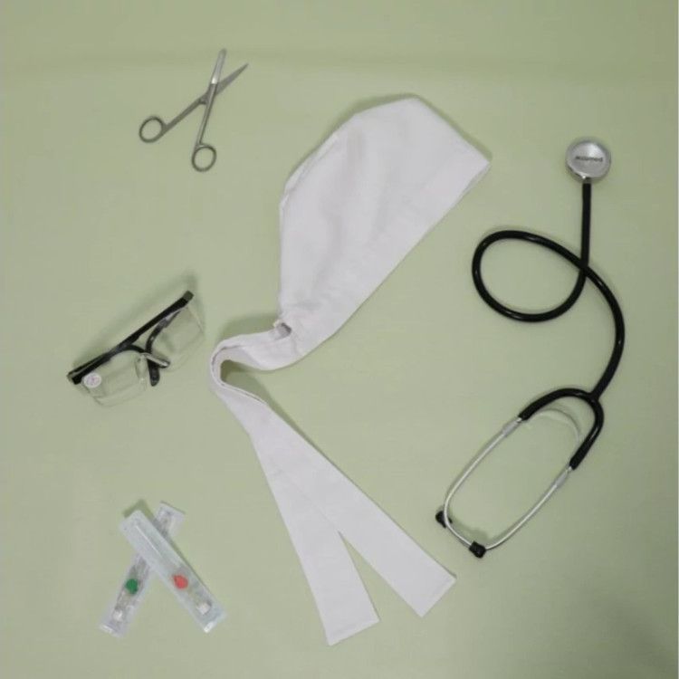 کلاه پزشکی ترگال کجراه با بند بلند کرواتی پارچه ترگال درجه یک ترگال کجراه مناسب کادر درمان، کلینیک های زیبایی و مطب های خصوصی