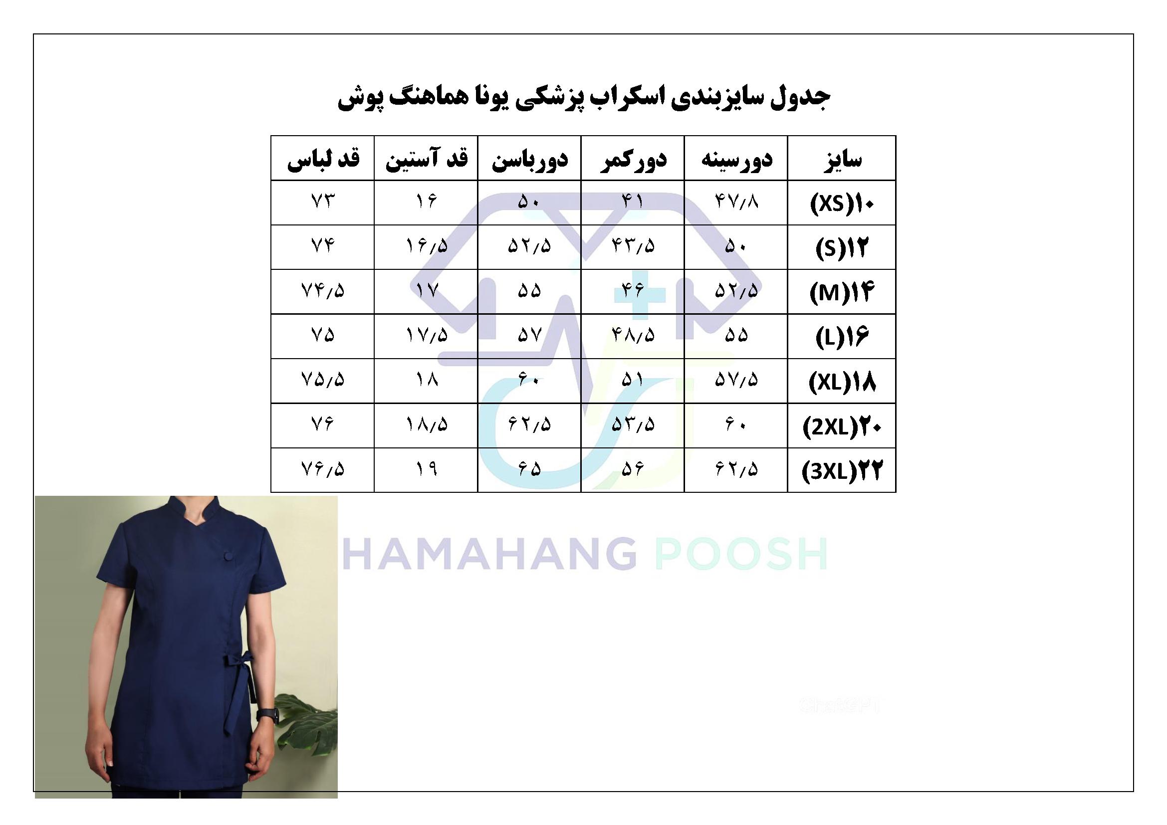 اسکراب پزشکی یونا با طراحی بسیار شیک و خاص مناسب پرسنل محترم کادر درمان.