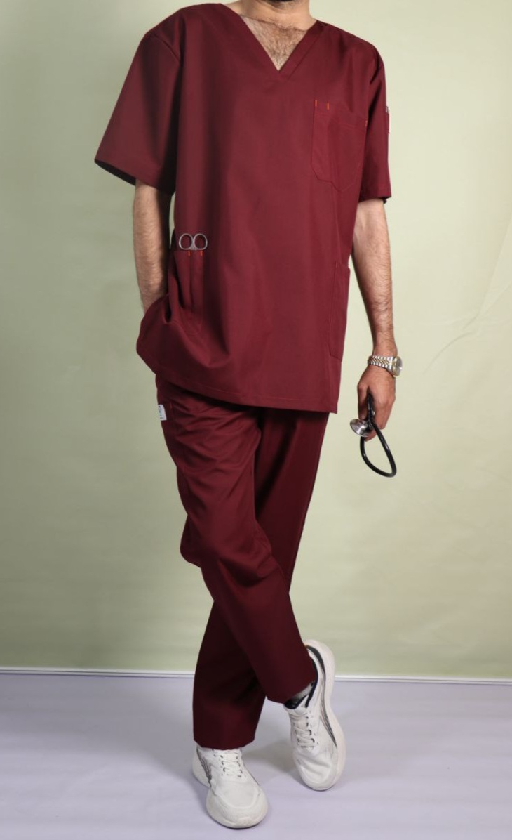 ست اسکراب و شلوار پزشکی مردانه زرشکی