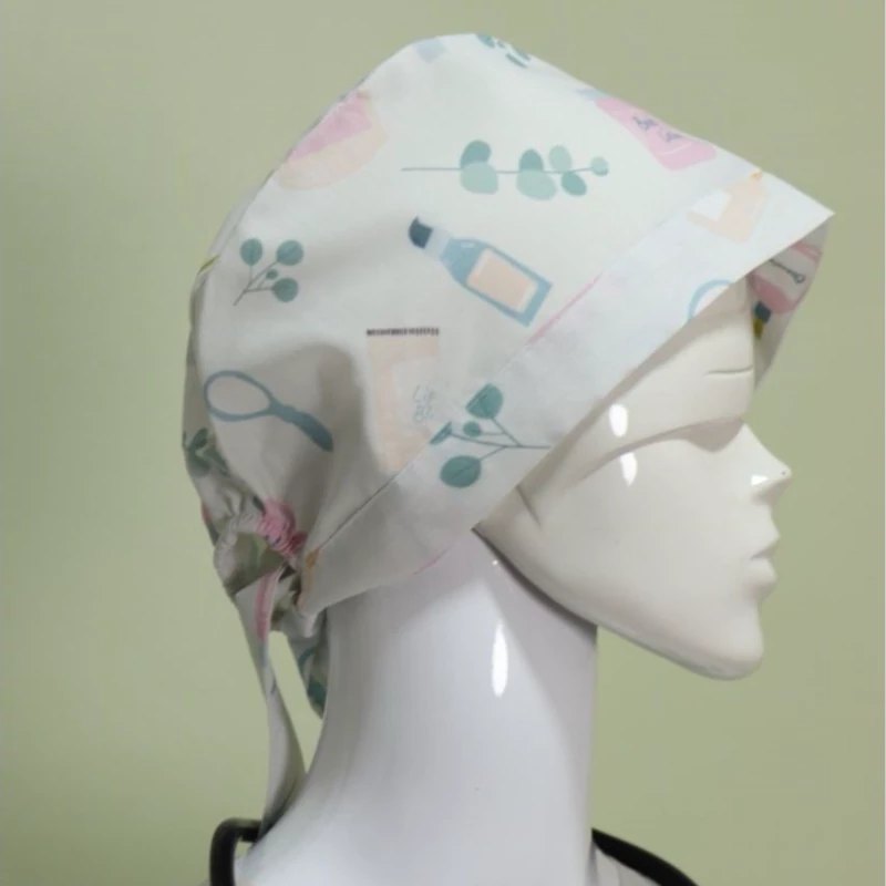 کلاه پزشکی زنانه طرح زیبایی مناسب استفاده در مطب و کلینیک های زیبایی بند بلند کرواتی جنس تترون درجه یک کیفیت پارچه درجه یک خنک و مناسب محل کار